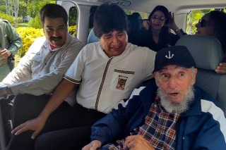El líder de la revolución cubana y el presidente de Venezuela sorprendieron hoy en su hotel donde se hospeda en la capital cubana al mandatario boliviano, al buscarlo para dirigirse juntos en una combi a la celebración del 89no cumpleaños del ex jefe de Estado.