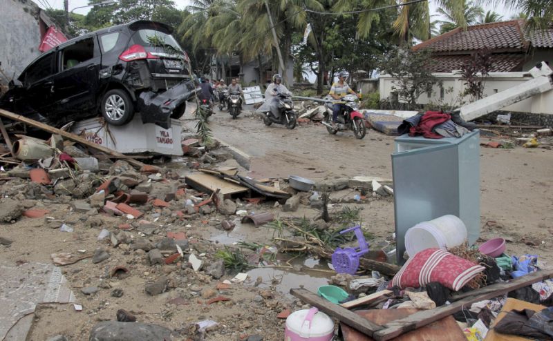 Esta combinación de imágenes de radar de apertura sintética muestran al volcán Anak Krakatau de Indonesia, al centro, antes y después de su erupción el 22 de diciembre de 2018. (Autoridad de Información Geoespacial de Japón vía AP) Más YAKARTA (AP) — Indonesia amplió la zona vedada alrededor de la isla donde un volcán desató un tsunami el fin de semana, matando al menos a 430 personas en las islas de Sumatra y Java, informaron el jueves las autoridades. El estado de alerta por el volcán Anak Krakatau fue elevado al segundo nivel más alto, y la zona de exclusión fue extendida más del doble a un radio de 5 kilómetros (3 millas), señaló la agencia vulcanológica del país. La erupción el sábado por la noche provocó que parte de la isla en el Estrecho de la Sonda se desplomara hacia el mar, generando un maremoto con olas de más de 2 metros (6,5 pies) de altura. El gobierno les ha advertido a las comunidades en el estrecho que permanezcan a un kilómetro (0,6 millas) de la costa debido al riesgo de que se produzca otro tsunami. El desastre golpeó sin previo aviso, tomando a la gente por sorpresa en un país que regularmente sufre deslizamientos de tierra, terremotos y erupciones volcánicas. Ningún sismo sacudió el suelo de antemano, y las olas surgieron tierra adentro durante la noche en un fin de semana festivo mientras la gente disfrutaba de los conciertos y otras actividades en la playa y en los centros turísticos. Las fuertes lluvias y marejada alta han obstaculizado la búsqueda y el esfuerzo. Algunos cuerpos fueron encontrados en el mar y al menos 159 personas están desaparecidas. Los datos de radar de los satélites, convertidos en imágenes, muestran que el volcán Anak Krakatau es mucho más pequeño después de la erupción del sábado.