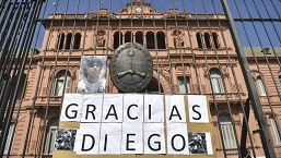 El velatorio de Diego Armando Maradona se lleva a cabo desde las 6 de mañana en la Casa Rosada, donde se realiza una multitudinaria despedida popular al máximo astro del fútbol argentino.