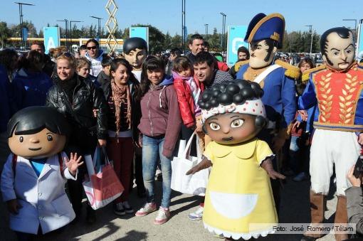 En la puerta de ingreso los esperaban Zamba y sus amigos junto a los organizadores de Tecnópolis, que les entregaron regalos, los llevaron a almorzar y los acompañaron luego por todo el recorrido.
