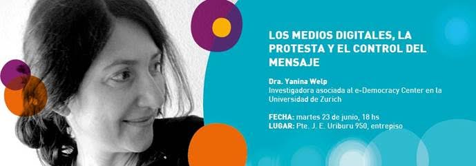El martes 23 de junio a las 18 hs. se llevará a cabo en el marco del Programa La Universidad de Buenos Aires para el Siglo XXI la conferencia “Los medios digitales, la protesta y el control del mensaje”, a cargo de la Dra. en Ciencias Políticas y Sociales por la Universidad de Pampeu Fabra (UPF) Yanina Welp.