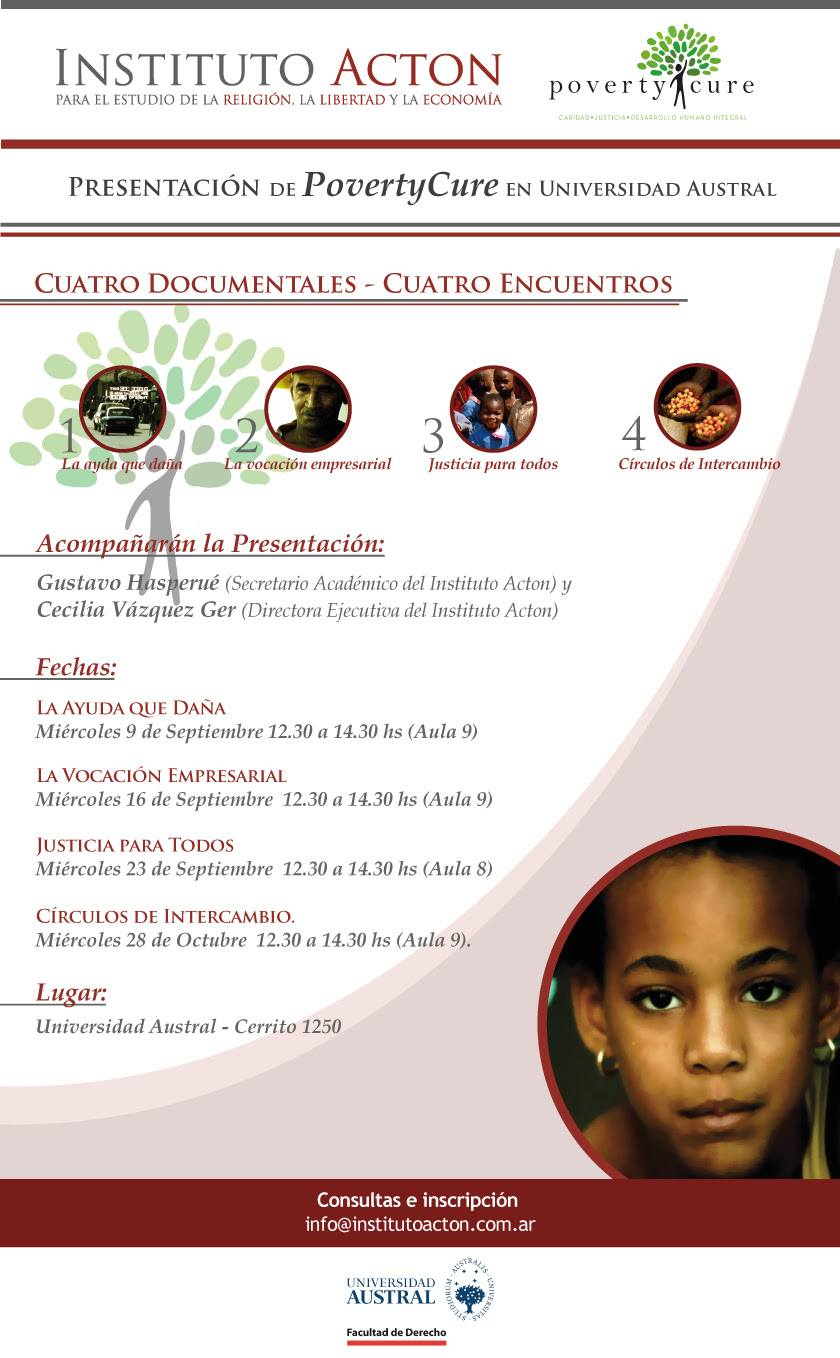 conferencias al mediodía sobre PovertyCure. En este caso, presentaremos "La vocación empresarial", junto con Gustavo Hasperué, Secretario Académico del Instituto Acton.