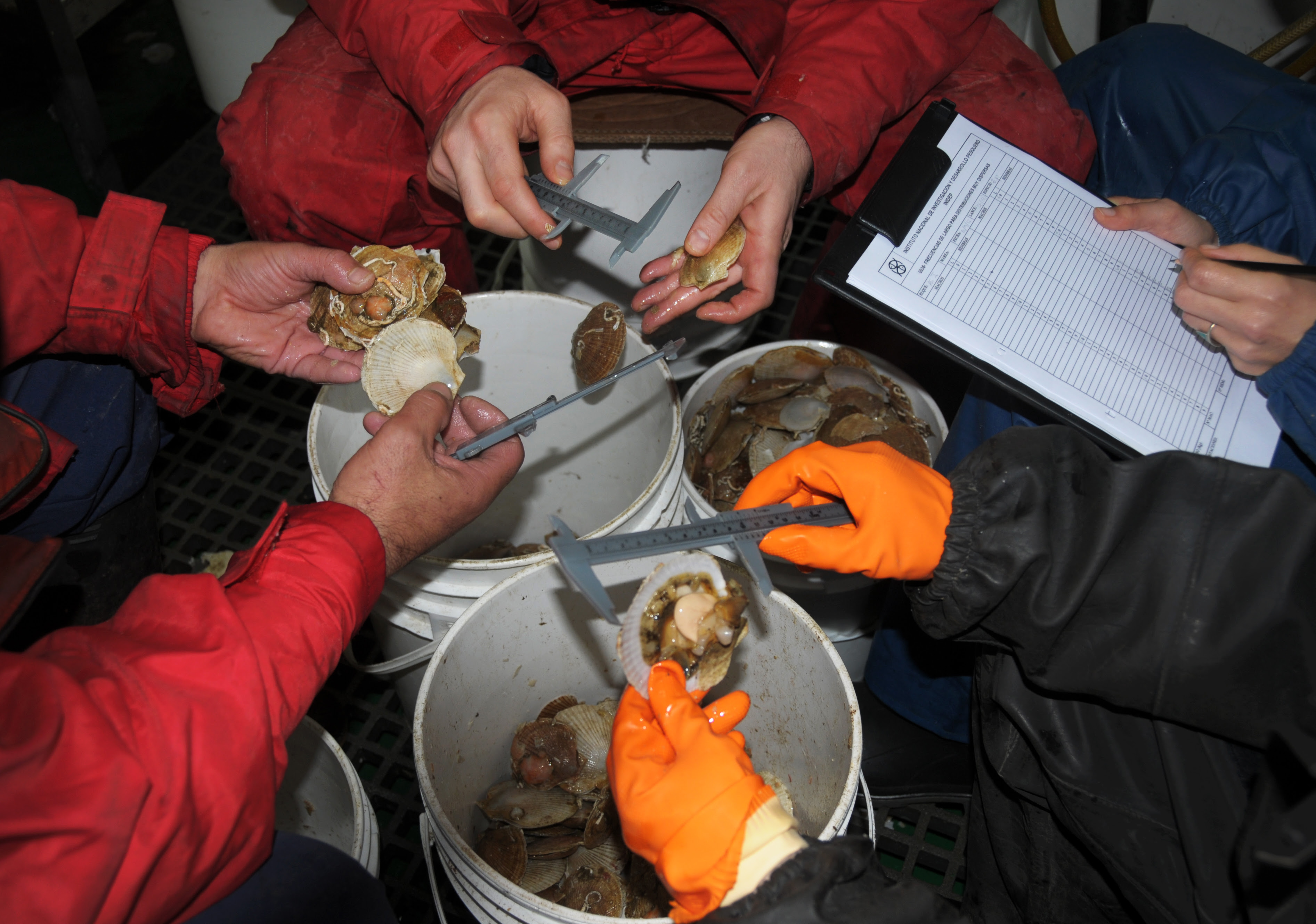 Trabajo en buqueEl personal científico-técnico que completó la evaluación lo conformaron por parte del INIDEP Susana Herrera, Javier Villalba, Julián Bastida, Ronaldo Díaz, Juan Pablo Simonazzi, Claudia Dato, Gustavo Alvarez Colombo, Juan Pablo García, Gonzalo Tróccoli, Eduardo Aguilar y Angel Matecos de CONICET-INIDEP.