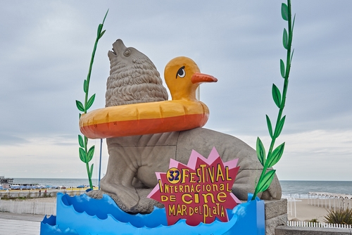 Con tres importantes intervenciones artísticas y urbanas, la ciudad de Mar del Plata fue pensada como una gran puesta en escena que cuenta con el recorrido “Festival en 3D”, la campaña gráfica “Tributo a divas icónicas del Cine Argentino” y la intervención al monumento al Lobo Marino del renombrado Marcos López, en el marco del 32° Festival Internacional de Cine de Mar del Plata. El “Festival en 3D” es un circuito peatonal de dos kilómetros que une las salas de exhibición y el MAR, Museo de Arte Contemporáneo, tomando como eje la tradicional Plaza Seca Almirante Brown, frente al Teatro Auditorium, sede de la Competencia Oficial. El área central es uno de los espacios más significativos del patrimonio turístico argentino y latinoamericano, y el punto donde se entrecruzan las tres dimensiones del Festival: actores, público y pantalla. El público podrá vivir estas instancias dentro de la plaza en la que funcionarán puestos de informes y muestras exteriores específicas así como áreas de descanso. En el remate de la plaza, una gran pantalla/marco encuadrará el paisaje marplatense de cielo, mar y rambla. Las actrices que instalaron el cine argentino en el mundo, con su talento y glamour, y potenciaron el Festival Internacional de Cine de Mar del Plata, son homenajeadas en la campaña gráfica “Tributo a divas icónicas del cine argentino”. Tita Merello, Mirtha Legrand, Graciela Borges y Norma Aleandro, fueron retratadas por Annemarie Heinrich (1912-2005) y su obra intervenida por el equipo de Diseño del Instituto Nacional de Cine y Artes Audiovisuales, estará presente en las calles de la ciudad durante los 10 días del Festival. “Los directores del Festival de Cine me invitaron a hacer una intervención para que dialogue con el Festival, y sobre todo que dialogue con la ciudad de Mar del Plata”, comentó Marcos López acerca de su participación como artista invitado del Festival. Sobre su intervención al Monumento Al Lobo Marino, “A mí como artista me interesa la cultura popular y la obviedad discursiva, es como un homenaje al Lobo, en diálogo amistoso con el pato inflable”, concluyó. López ha recibido numerosos premios y distinciones, su obra se ha exhibido en museos y galerías de arte de todo el mundo, las más destacadas de los últimos años.